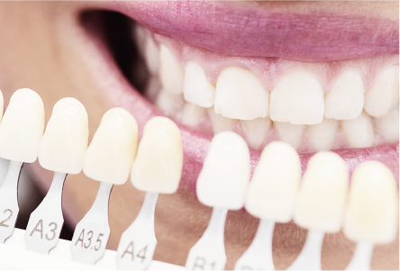 치아의 변색 원인과 변색 정도를 파악하여 치료 계획을 세웁니다.